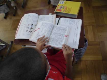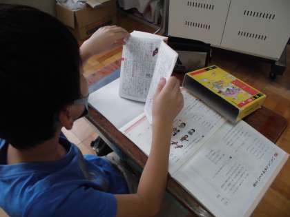 国語科「いろいろな意味をもつ言葉」の学習をしました。「ひく」「みる」「でる」など同じ言葉でも意味が違う言葉はたくさんあります。国語辞典を使い,意味を調べるとたくさん出てきてびっくりしました。リズムのよい文づくりにもチャレンジしました。