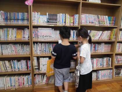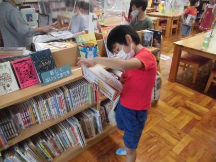 本を読むのも読んでもらうのも大好き。どんな本にも興味津々で「どの本のしようかなぁ」と悩ましい声が聞こえます。自分の好きな本にしようか,友だちに紹介してもらった本にしようか,いろいろな本の背表紙をみながら考えていました。