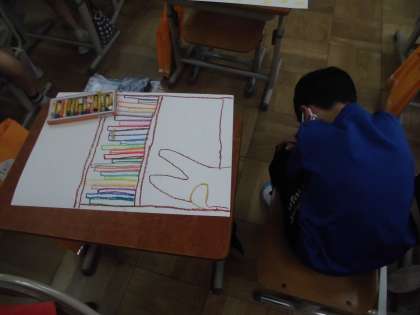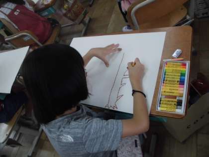 お話の絵は,絵本のお話だけを聞いて想像しながら絵を描いていくなかなか難しい課題です。同じ本でも全く絵が違ってくるので,自分の想像力だけが頼りです。
