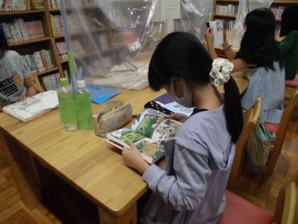 学校司書の田原先生に本の読み聞かせをしてもらいました。落語をもとにしたもので,最後のオチに「えっ!?」と空気が止まってしまうような話でした。自分の興味のある本を選んでいる時間,新たな本と出会える時間,静かな時間…本と向き合う時間を楽しんでほしいです。