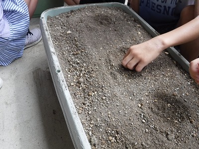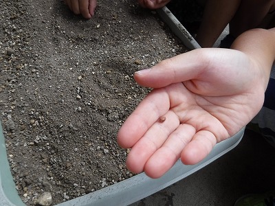 1学期に取り組んだミニトマトの栽培では,たくさんのミニトマトが実りました。サツマイモもぐんぐんと成長中です。2学期からは「秋から育てる野菜にチャレンジ」ということで,ダイコンとニンジンを育てます。ニンジンは収穫できれば,チャロへのプレゼント!初めて見るダイコン・ニンジンの種をみんなで協力してまきました。芽が出てくるのが楽しみです!