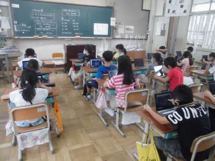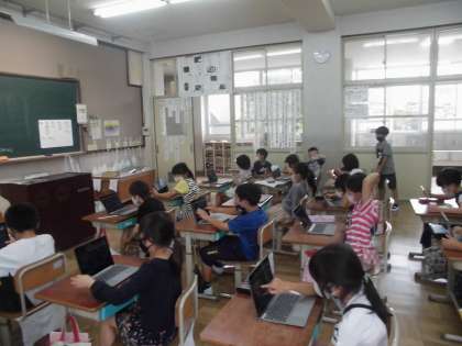 GIGA端末を見ながらの発表。いつもの発表より少し緊張ぎみです。
