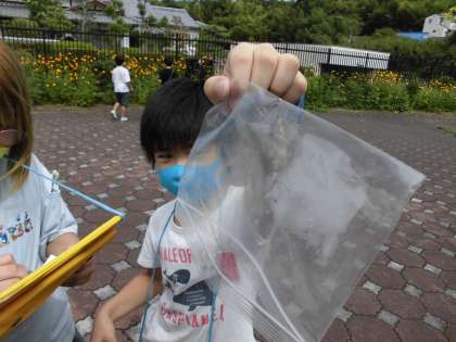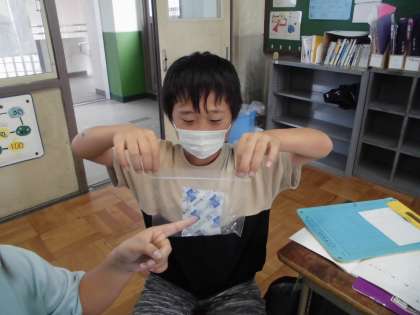 保冷剤をもって学校中を調べてまわり,どの場所も水蒸気が含まれていることに気づくことができました。