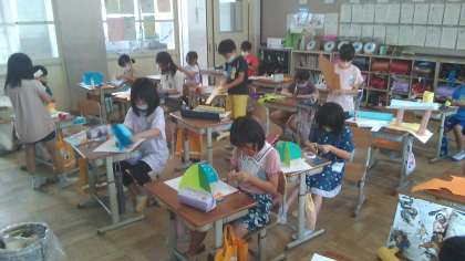 今日は,図工でわりピンを使った回る仕かけを工夫して,作品作りをしました。