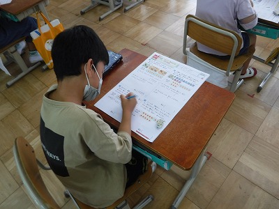 算数科の「図を使って考えよう(2)」「しきと計算」のまとめのテストをしました。1年生時から図を使って考えることに取り組んできた成果もあり,子どもたちにとっては得意な単元となりました。みんなスラスラと問題を解いています。