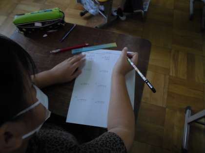 算数でわり算の筆算の学習は終わりましたが,宿題やチャレンジタイムなどで繰り返し取り組んでいます。