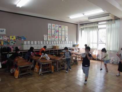 みんなそれぞれ,自分がきれいにしようという場所を見つけて動いています。