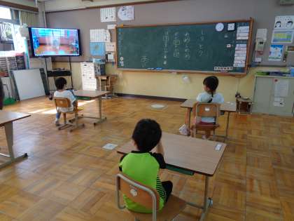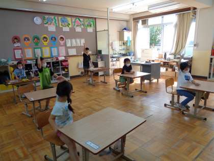 やり方が分かったので,朝の会の時間を使って,子ども達と先生とでやりました。 「"ん"がついたらだめだよ。」「同じ言葉を使うのもだめ。」と教え合っていました。