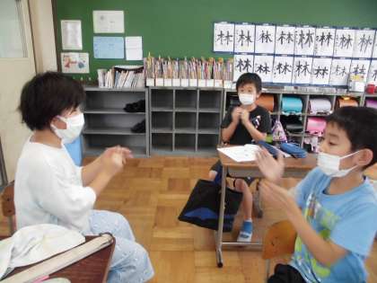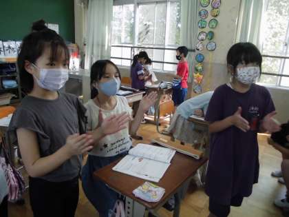 8分音符や8分休符の入ったリズムは難しく始めは苦戦していた子どもたちでしたが,何度も何度も繰り返し練習するうちに,授業の最後には「できた!!」の声がたくさん聞こえてきました。