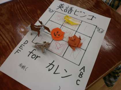 1つ目のグループは,ビンゴゲームをしてくれました。最後は手作りの折り紙をカレン先生にプレゼントをしました。