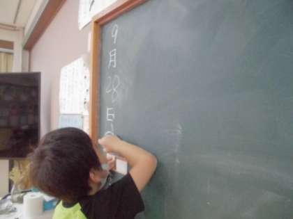 (1)黒板の日付を書く。