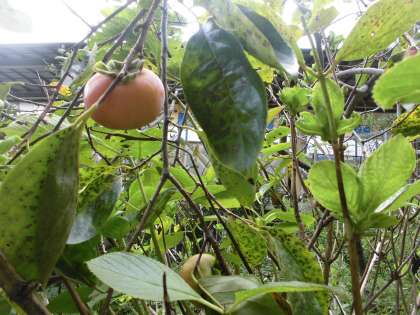 まだたくさんではないけれど,柿がちょこんとなっていました。
