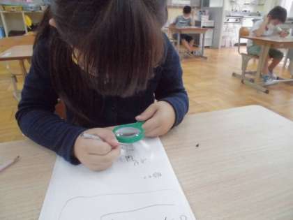 長さの単位が分かるので「大根の種は3mmや。」「アサガオの種は6mm」アサガオの種の方が大きいことに驚いていました。