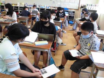 火山のはたらきによって,地層ができること以外におこる土地の変化について調べました。動画や図書資料を使って,自分なりにまとめ,班で交流しました。火山の噴火によって新たな島や,カルデラと呼ばれるくぼ地ができることを知り,自然の力の大きさに驚きました。