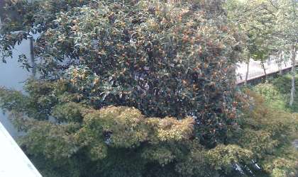 教室の前の廊下を通ると何だかいいにおいがしました。外を見るときんもくせいが綺麗に咲いていました。