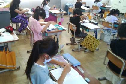 算数の学習ではコンパスを使って円をかく練習をしました。