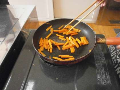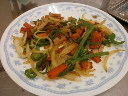 今日の調理実習では,「いろどりいため」をしました。