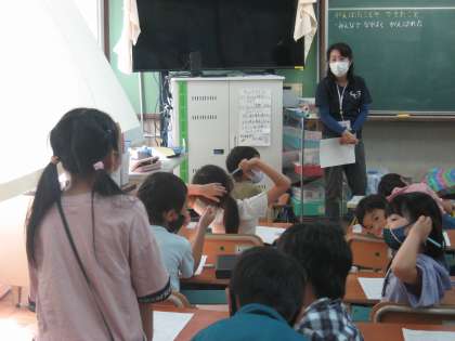 閉会式が始まるまでの間,運動会の振り返りをしました。