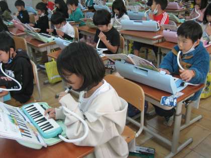 鍵盤ハーモニカの学習が始まっています。