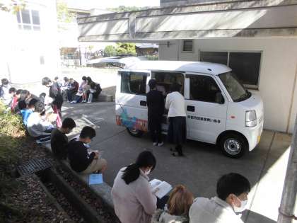 今日から「やきいも読書週間」が始まりました。今年度は2回目の読書週間です。いろいろなイベントも企画されています。読書の秋です。活字に親しんでほしいですね。今日は洛西図書館から「青い鳥号」が来てくれました。普段はない本がいっぱいありました。