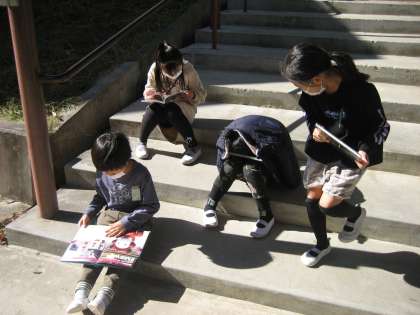 よいお天気の中,青空の下で,読書に親しみました。