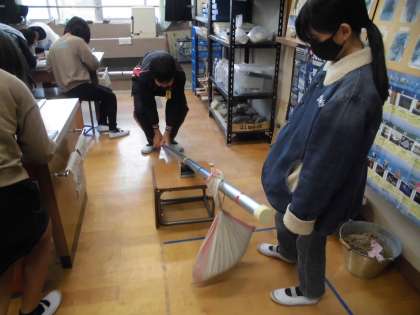 普通に持ち上げるより,棒を1本使うだけで楽に持ち上げることができることを体験しました。