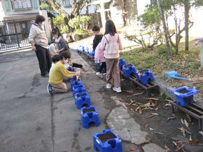 どのあたりに球根を埋めるのか,水はどれぐらいの量をあげるとよいのか,調べたり,話を聞いたりして,大切に植えました。