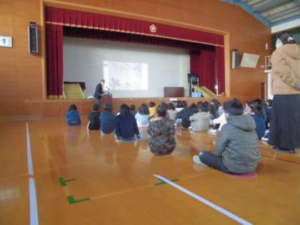校長先生から人権についてのお話をしてもらいました。校長先生の質問に,みんなの前で手を挙げて発表する子もいました。教室でも「人権って何?」をテーマに話し合いをしました。ひまわり学級では,人権を「仲よくすること」として話を進めました。