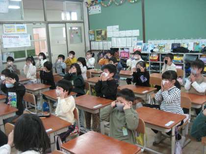 歌を歌ったり,クイズをしたりしながら,楽しみながら英語を学びました。