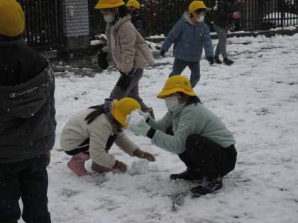 雪の感触を感じながら遊びました。雪だるまづくりや雪合戦など,たくさん楽しみました。