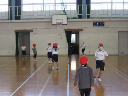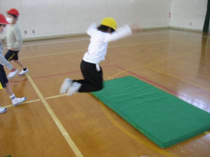 その後に,島跳びをしました。両足でしっかりと踏ん張って,着地していました。