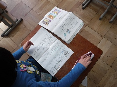 国語の学習で,「ようすをあらわすことば」を使い,文作りに取り組みました。絵の様子が相手に伝わるようにを意識してがんばりました。
