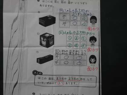 明日,はこの面の形や数をしらべます。