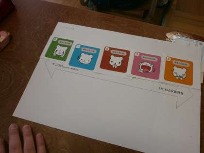 今日の5時間目は,情報モラル教室で「SNSによるコミュニケーショントラブル」についてみんなで考えました。自分はおもしろいと思って送った言葉やスタンプが相手を嫌な気持ちにさせてしまい,それがきっかけでトラブルになることもあるという事例から,同じ言葉やスタンプ・絵文字でも人によって受け取り方はちがうということを学びました。では,このようなトラブルを避けるためにどのようなことに気をつけたらよいか…個人で付箋に書きだし,グループで話し合ったことを短冊に書きました。「相手の気持ちを考えて送る」「送信する前に読み返す」などたくさんの意見が出ました。この学習をきっかけに,今一度SNSの使い方についてお家でも話し合ってみてください。