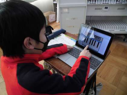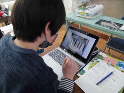「ミ」「ソ」「ラ」「ド」「レ」この5つの音階は昔から伝わる日本の曲によく使われる音階です。今日は,スクラッチ鍵盤を使って旋律づくりをしました。実際の鍵盤ではありませんが,音を鳴らしながら,自分の心地いい旋律を考えてつくっていました。