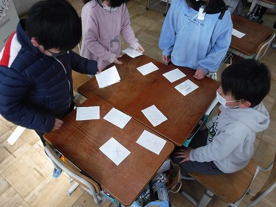 国語科の学習でかん字クイズをしました。かん字とかん字を組み合わせてできる「かん字」や「ことば」について学習した後,実際に自分たちで問題を作りました。友達が考えた問題にチャレンジし,解くことができるるとうれしそうな子どもたちでした。