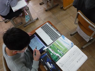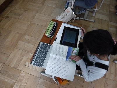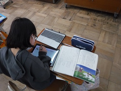 国語科では「スーホの白い馬」を学習しています。学習を進めるにあたり,お話に出てくるむずかしい言葉をロイロノートを使って共有しました。みんなで出し合った言葉の中から,知っている言葉があれば子どもが説明をして確認し,みんなが分からない言葉については調べることにしました。