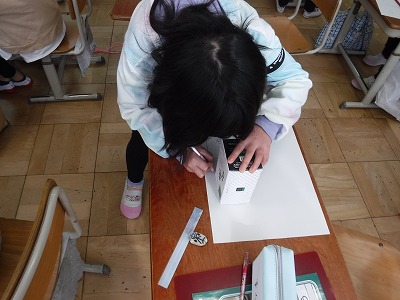 算数科で「はこの形」について学習しています。今日はそれぞれが持ってきたはこの面の数や形についてしらべました。調べて分かったことをもとに,単元の最後には箱作りに挑戦します。上手に箱が作れるか楽しみです。
