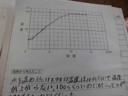「子どもたちは100度以上になるんじゃない?」「100度まで上がった後下がるんじゃない?」など様々な予想が出ました。
