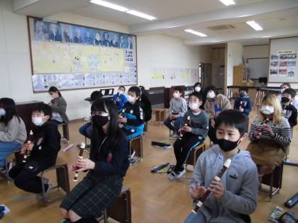 授業ではリコーダーを吹いて演奏することはできませんが,階名で歌いながら指練習をしています。