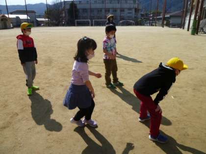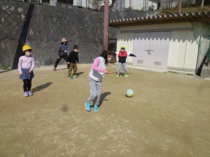 花壇の草引きに出かけた後,日差しが暖かかったので,運動場に出て転がしドッジボールをしました。