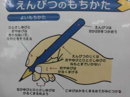 ひらがなの勉強の続きです。今日はえんぴつのもちかたも勉強しました。宿題は,3枚目の写真のものです。全部書きましょう。イラストの色塗りはどちらでもいいです。えんぴつのもちかたPDF