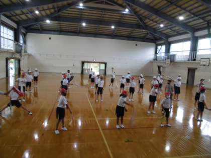 団体演技のフラッグダンスの練習を始めました。フラッグの動きにあわせて,視線を動かすとかっこよく見えますね!慣れるまではタオルを使って練習します。かっこいいダンスになるようにがんばっていきましょう。