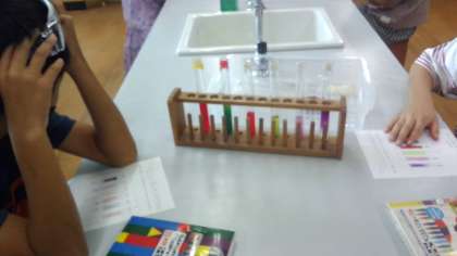 今までに学習した5つの水溶液に加えて「?」とした水溶液も,色の変化やにおいなどから「酢ではないか?」と特定することができました。