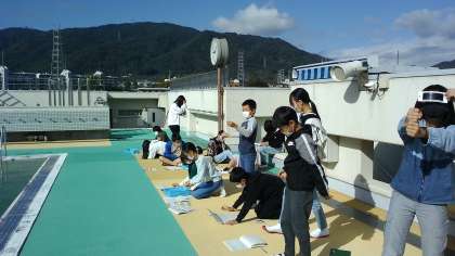 月と太陽の位置がどのように変化するのかを観察しました。二日前と比べて,太陽の位置はほとんど変わっていないのに対して,月の位置が大きく変化していたり,形が変わったりしていることに気づくことができました。