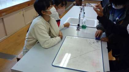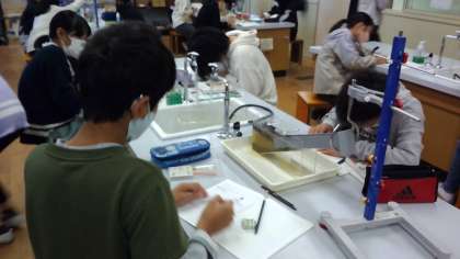 グループで予想を立ててから実際に実験を行い,予想と比べながら結果を詳しく記録しました。