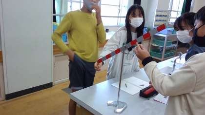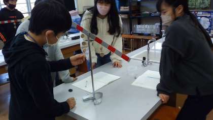 実験用てこをつかって,左右のうでがつりあう時のきまりを見つけました。左右でおもりの重さが違ってもつり合った時には「お〜!」と驚く様子がありました。2,3回数を変えて実験することで,きまりに気づくことができました。