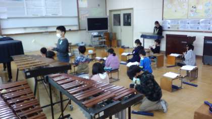 「茶色の小びん」の合奏をしています。個人の練習ですらすらと演奏できるようになってきたので,今日は全員で合わせてみました。合わせてみると,いろいろな楽器の音が組み合わさってとてもきれいでした。合わせることによって,また新たな課題も見つかったので,3学期にも練習をしていきます。