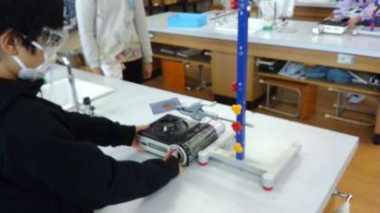 金属はどのようにあたたまるのか,サーモインクを塗った金属を熱して,熱の伝わり方を観察しました。いろいろなパターンの実験を全員がコンロを正しく使って調べることができました。これからも安全に気を付けながら,学びを深めていってほしいと思います。