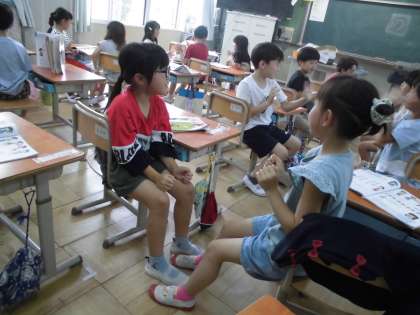 まずひとりで、次に友達と楽しくリズムを感じ取りました。